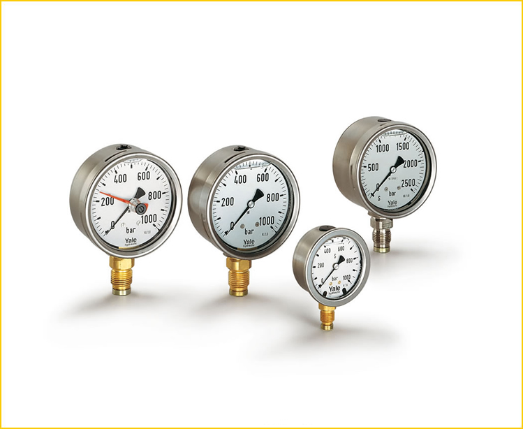 Basınç ölçerler GGY Basınç ölçerlerin kullanımı, çalışma basıncı izlenmesi gerektiğinde tavsiye edilir (takılı silindirin kuvveti). Yale basınç ölçerler paslanmaz çelik muhafaza ve bir akrilik plastik yüz kapatma levhası ile donatılmıştır. Basınç şoklarını emmek için, ölçerler gliserin ile doldurulmuştur, böylece uzun bir hizmet ömrüne katkıda bulunur. Ayrıca bir motorlu pompaya yerleştirildiğinde, ibre titreşmeden duracaktır. Uygulanan silindir kuvvetlerinin hesaplanması için, ilgili dönüşüm tabloları (basınç ile kuvvet karşılaştırması) tüm Yale hidrolik silindirleri için ücretsiz olarak sağlanabilir.