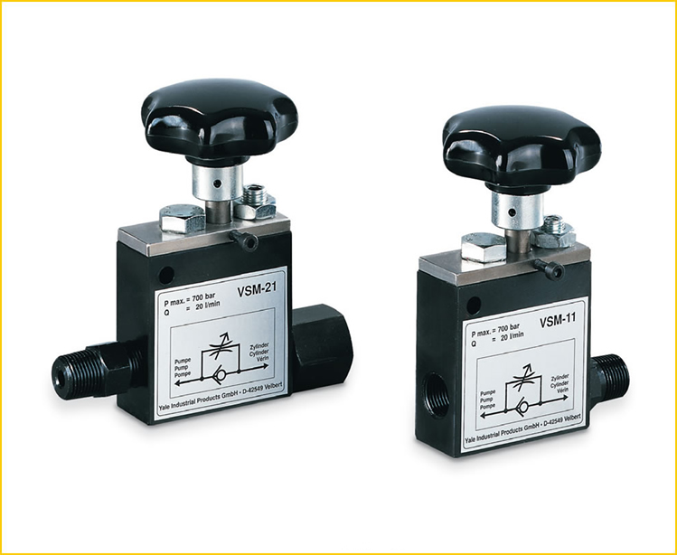 Bu emniyet kontrol vanaları, basınç düşmelerinin kaçınılması gerektiği uygulamalar için kullanılır (örn: kaldırılmış bir yükün tutulması). Bir hidrolik devredeki yerine bağlı olarak bu vanalar farklı fonksiyonlara sahip olabilir. Model VSM-11, doğrudan hidrolik silindirin yağ deliğine vidalanabilir ve bu yerde “hortum kesme sigortası” olarak çalışır. VSM-21’in tasarımı VHP yönlü vanalarla kombinasyon için uygundur. Bu yerde, VSM-21 basıncın hassas bir şekilde tutulması ve yön valfının çalışmasının neden olduğu basınç düşmesinin önüne geçilmesini sağlar. Çalışma; Boşaltma vanasının kapatılmasından sonra (el anahtarı) silindir baypas ile ileri itilebilir. Silindir yönünde vanalar her zaman serbest akışa sahiptir. Yerleşik kontrol vanası basınç verilmiş bir silindir hassas bir şekilde durma konumunda tutulur (örn: bir kaldırılmış yük). Akıcı indirme hızı basıncı serbest bırakmak için kısma vanasını açarak ayarlanabilir (el anahtarı). Bir emniyet basınç vanası dış yükleme ile aşırı yüklenmeye karşı silindiri korur.