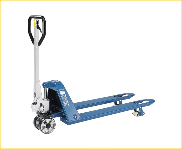 Kapasite 1500 kg Özellikle alçak paletlerin profesyonel taşınması için. Özellikler • Kaldırma, sürme ve indirme işlemlerinin tek elle yapılması için ergonomik güvenli kontrol kolu. • Güvenli taşıma için ergonomik kauçuk kontrol kolu • Sert krom kaplama piston ve basınç boşaltma valfli, düşük bakım gerektiren yüksek performans hidrolik pompa. • Güçlü çelik yapıya sahip iskelet ve çatallar, ayarlanabilir bağlantı rotları, özellikle sertleştirilmiş dingiller ve yüksek kalite toz kaplama uzun bir hizmet ömrünü garanti eder • Özellikle alçak paletlere kolay girmesi için sadece 51 mm yüksekliğinde palet girişi. • Dar yerlerde kolay taşıma için her bir tarafa 105 derece dönüş açısı