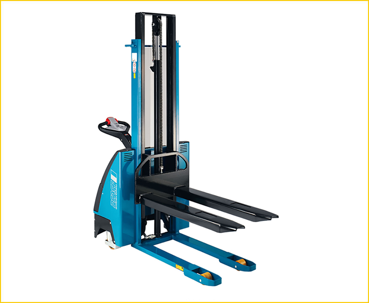 Kapasite 1.200 kg, Çatal yüksekliği maks. 3.500 mm Kısa mesafeli ve orta yoğunlukta iş yükü için depoda paletli yüklerin istiflenmesi ve taşınması için idealdir. Özellikler • Kolay taşıma için çok fonksiyonlu kontrol kolu. Kontrol kolunun kullanıcı tarafından bırakılması ve elinden kurtulması halinde otomatik olarak durur. • Sürüş hızının kademesiz ayarlanması için güvenilir hız kontrolü. • Kompakt elektrikli hidrolik kaldırma tertibatı ve aşırı yük koruma. • Basınç düşürme valfi ve ayarlanabilir indirme valfi ile yükün hassas indirilmesi. • Kuvvetli profilden hassas işlenmiş kaynaklı şase, bakım gerektirmez serbest kılavuz tekerlekli çatal taşıyıcı. • Tek tahrik tekerleği, iki yük ve iki denge tekerlekli sağlam iskelet.