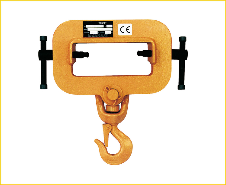 Foklift Kancası TZH Kapasite 1500 – 10.000 kg Kaldırma ekipmanını ve yükleri forklift çatallarına sabitlemek için. TZH forklift çatallarına itilir ve iki vidalı mil ile sabitlenir. Emniyet mandallı döner ve eksenel kanca kaldırma esnasında güvenliği sağlar.