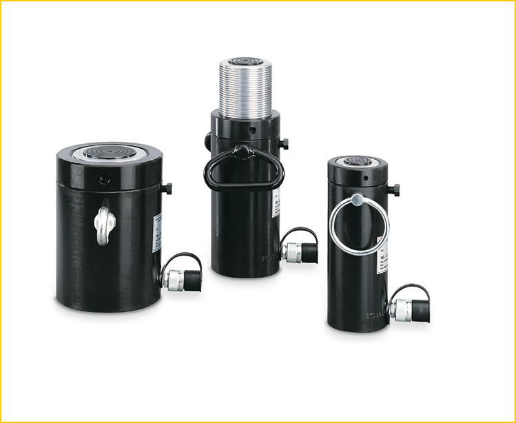 Tek etkili, ağırlıkla dönüşlü kapasite maks. 30-1100 ton Emniyet kilitleme somunlu hidrolik silindirler, yüklerin uzun bir süre kaldırılmış bir konumda kalması gerektiği hallerde tavsiye edilir. Emniyet kilitleme somunu, herhangi bir konumda pozitif yük tutmasını sağlar ve iş kaldırılan yükün altında gerçekleştirilebilir. Hidrolik basınç, silindirlerin mekanik destekler olarak çalışabilmesi için serbest bırakılabilir. Pompalar silindirden sökülebilir. Büyük makine, çelik yapılar, köprüler veya benzeri yüklerin kaldırılması ve taşınması, binaların ve temellerin desteklenmesi. Özel bir emniyet faktörünün uygun olduğu, köprü kaldırma ve indirme, binaların ve temellerin desteklenmesi, ağır makinelerin, çelik yapıların, gemi modülleri veya benzeri yüklerin kaldırılması gibi tüm ağır krikoyla kaldırma işleri için, Özellikler • Çalışma basıncı maks. 700 bar. • Ağırlık ile dönüşlü tek etkili. • Geniş kılavuz bantlar güçlü bir piston yönlendirme sağlar. • İkizkenar eğri dişli, sert krom kaplama piston • Aşırı akım deliği pistonu durması sağlar. • Değiştirilebilir sertleştirilmiş eyer. • Yağ deliği girişi 3/8 NPT. • Bağlantı kaplini model CFY-1 dahil. • Tüm silindirler kaldırma halkasına sahiptir.