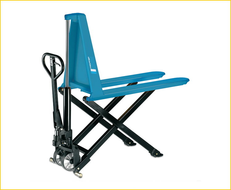 Kapasite 1.000 kg, Çatal yüksekliği maks. 800 mm Paletli yüklerin çeşitli yüksekliklere taşınması ve kaldırılması için manuel palet taşıyıcı ve kaldırma platformu kombinasyonu. Özellikler • Hızlı kaldırma - kaldırma - indirme fonksiyonlarına sahip güvenli kumanda kolu • İndirme hızı, yükün hassas bir şekilde indirilmesi için hassas bir şekilde ayarlanmıştır. • Daha fazla sağlamlık için tek kademeli hidrolik. • 250 kg’a kadar yüklerin hızlı kaldırılması • Basınç boşaltma valfli aşırı yük koruması. • Güvenlik destekleri, çatallar kaldırıldığında dayanıklılığı garanti eder. • Standart tekerlekler ile az gürültü ve akıcı sürüş: Dümen tekerlekleri ve yük tekerlekleri - poliüretan.