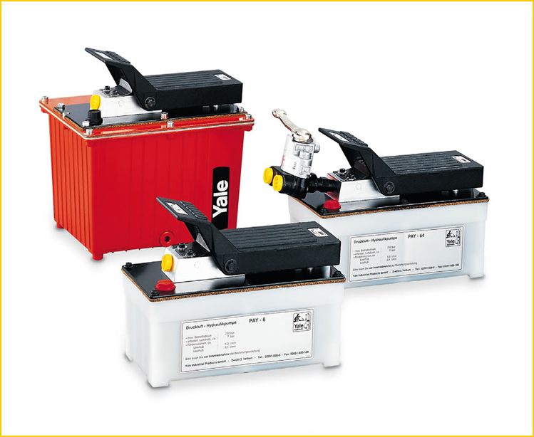 Basınçlı hava tahrik motorlu 700 bar Bu mini pompalar, bir hava ile güçlendirilmiş motor ile tahrik edilir ve basınçlı havanın herhangi bir güç kaynağına takılabilir. Bu kompakt ekonomik pompalar maks. 700 bar çalışma basıncına kadar tek etkili veya çift etkili hidrolik silindirleri çalıştırabilir. Büyük depolardan dolayı, büyük silindirler veya çoklu silindirler çalıştırılabilir. Hat içi hava filtreli yağlayıcı kullanımı tavsiye edilir. Hidrolik basınç, hava yağlayıcı ünitesinin regülatöründe sonsuz bir şekilde ayarlanabilir. Hava tahrikli motor %100 patlama koruması garanti eder. Çift etkili hidrolik silindir için pompalar, ek 4 yönlü kontrol vanası tip VHH-4/3 ile donatılmıştır. Takılan hidrolik silindir, el veya ayak ile çalıştırılabilen üniversal pedal ile kontrol edilir – ilerle- dur- dön. Silindir hareketinin kontrol edilmesi; • Boş konumda pedal – motor hareketsiz, silindir hareketsiz, basınç tutulur. • Pedala basıldığında – motor çalışır, silindir ilerler, basınç oluşur. • Pedal ileri itildiğinde – motor hareketsizdir, basınç boşaltılır, silindir geri çekilir.