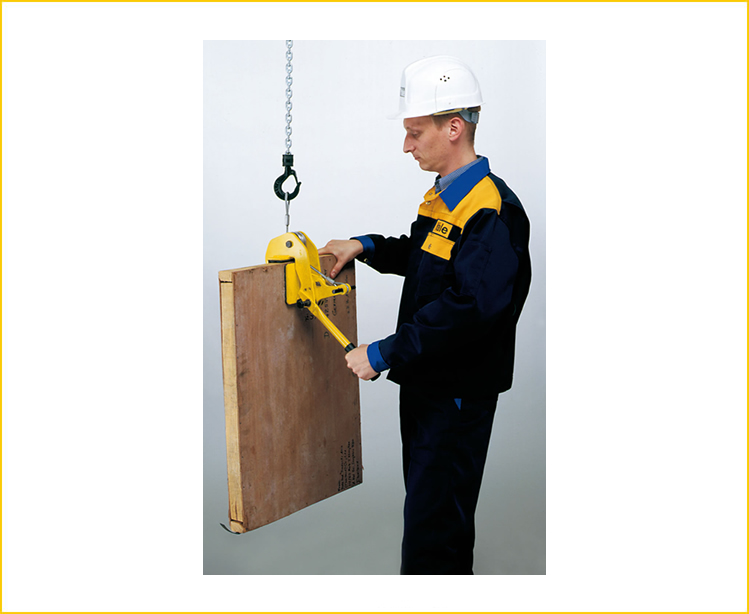 Panel kıskacı Model TPZ Kapasite 400 - 750 kg TPZ kıskacı, ahşap, yonga levha ve plastik levhaların kaldırılması ve dikey taşınması için geliştirilmiştir. Manuel bir kol yardımıyla, sıkıştırıcılar levhaya sabitlenir. Koruyucu kaplamalı çene, kaldırma başladığında kavrar ve paneli güvenli bir şekilde tutar.