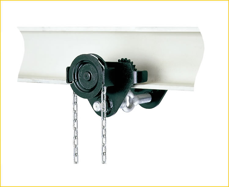 Kapasite 500 - 50.000 kg Şaryo, manuel veya el tahrikli kaldırma ekipmanı ile büyük yüklerin tam olarak yerleştirilmesi veya kolay taşınmasını sağlar. Özellikler • Önceden yağlanmış, tamamen kapalı bilyalı rulmanlara monte edilmiş ve işlenmiş çelik tekerleklerden dolayı mükemmel yuvarlanma özellikleri. • Geniş çapta kiriş genişlikleri ve profillere uygun hale getirilebilir (örn: INP, IPE ve IPB). • Ayarlamalar, ceraskalın şaryo mil halkasına ortalanmış bir şekilde yerleştirilmesi ile sağlanır. Ceraskal şaryo miline takılı iken ters dişli milin sola veya sağa doğru açılması mümkün değildir. • Şaryo tekerlekleri maks. %14’lük kiriş profili eğimi için tasarlanmıştır (DIN 1025 - kısım 1). • Şaryolar, UVV ve makine direktiflerine uygundur. Opsiyonlar • Manuel zincir kılavuzu • Paslanmaz çelik manuel zincirler. • Tamponlar • Korozyona dayanıklı versiyon • Patlama karşı koruma • Yüksüz şaryoyu kiriş üzerinde sabit bir konumda tutmak için kilitleme tertibatı (örneğin gemilerde park konumu).