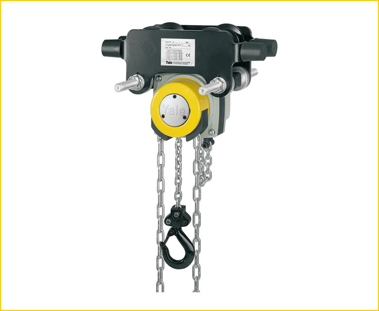 Kapasite 500 - 20.000 kg Düşük ölü mesafeli manuel şaryo ile Yalelift 360 kombinasyonu, Yalelift 360 uygulamasında daha fazla esneklik sağlar. Özellikler • 3000 kg’lık kapasiteye kadar bu serinin tüm üniteleri, tek bir zincir donanımı ile sağlanmakta ve ölü mesafesi (Boyut A) daha da azaltılmıştır. Alçak tavanlar ve sınırlı üst boşluğa sahip uygulamalar için idealdir. • Kanıtlanmış ve neredeyse kademesiz ayar sistemi şaryonun hızlı ve kolay montajını sağlar. • 180 mm’ye kadar kiriş genişliği için A Grubu standarttır ve tüm gerekliliklerin yaklaşık %80’ini kapsar. 300 mm’ye kadar kiriş genişliği için B Aralığına dönüşüm kolaylıkla gerçekleştirilebilir. • Şaryo tekerlekleri maksimum %14’lük kiriş profili eğimi için tasarlanmıştır (DIN 1025 - kısım 1), önceden yağlanmış, tamamen kapalı bilyalı rulmanlar ile mükemmel dönüş özelliği garanti edilmiştir. • Standart olarak düşmeyi veya eğilme önleyici tertibatlar. Opsiyonlar; • Ayarlanabilir aşırı yük koruma tertibatı. • Zincir kutusu • Korozyona dayanıklı versiyon • Patlama karşı koruma • Yüksüz şaryoyu kiriş üzerinde sabit bir konumda tutmak için kiriş kilitleme tertibatı (örneğin gemilerde park konumu). 5.000 kg kapasiteye kadar mevcuttur.